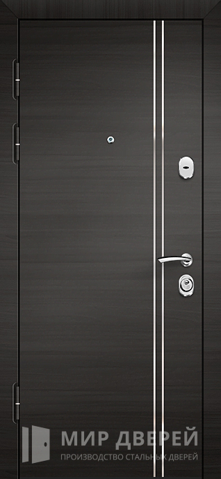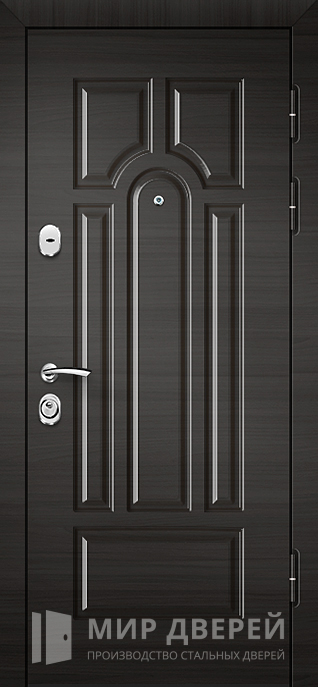 Дверь входная с влагостойким МДФ №24 – отличное решение для частного дома, квартиры или офиса. Внешняя и внутренняя отделка из влагостойкого МДФ с ПВХ покрытиями гарантируют долговечность и надежность в эксплуатации, а также сохраняют привлекательный внешний вид даже при высоких уровнях влажности. Цвет коричневого оттенка идеально вписывается в любой интерьер, добавляя ему изысканности. Каркас двери выполнен из профильной трубы 50х25 мм, что обеспечивает ее прочность. Лист металла толщиной 2 мм и ребра жесткости из профильных труб 40х25 мм усиливают конструкцию. Внутри установлен резиновый уплотнитель с двумя контурами, что повышает тепло- и шумоизоляцию. Дверь оснащена замками с ригелями: сувальдным замком «Просам» с тремя ригелями и цилиндровым замком «Мосрентген» с четырьмя ригелями для дополнительной безопасности.