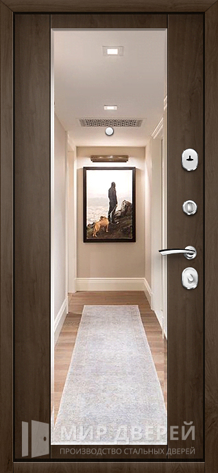 Дверь с полимерным покрытием идеально подходит для установки в частных домах, квартирах и офисах. Внешняя отделка выполнена с помощью порошкового напыления, внутренняя отделка — панелями МДФ с ПВХ. Цвета двери: тёмный, орех. Изготавливается в различных размерах (цена указана для стандартного размера 2000x800 мм). Коробка и полотно двери выполнены из профильной трубы 50x25 мм, лист металла толщиной 2 мм. Конструкция усилена ребрами жесткости из профильных труб 40x25 мм. Для дополнительной безопасности предусмотрены блокираторы. Шумо- и теплоизоляция предлагаются по желанию (минвата или пенопласт). Уплотнение выполнено из резины с двумя контурами. Дверь не имеет терморазрыва, но надежно защищает от холода и внешних воздействий.