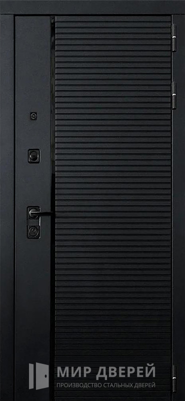 Эта дверь отличается современным дизайном и строгой эстетикой, которая прекрасно подчеркнет интерьер квартиры, офиса или частного дома. Корпус выполнен из профильной трубы 50х25 мм с ребрами жесткости 40х25 мм и стальным листом толщиной 2 мм, что делает конструкцию устойчивой к нагрузкам и надежной в эксплуатации. С обеих сторон поверхность оформлена панелями МДФ ПВХ в темных оттенках серого и черного, создающих стильный и солидный внешний вид. Входная дверь для квартиры №1 гармонично впишется как в классические, так и в современные интерьеры, сочетая визуальную привлекательность с функциональностью. Два контура резинового уплотнителя обеспечивают хорошую изоляцию от шума и запахов, при этом при необходимости конструкция может быть дополнительно оснащена плитой минваты или пенопластом для повышения тепло- и звукоизоляции. Блокираторы усиливают защиту, а универсальность модели позволяет изготавливать изделие в любых размерах и дополнять его различными элементами — от декоративных вставок до установки видеодомофона, что делает дверь не только надежной, но и максимально удобной в эксплуатации.