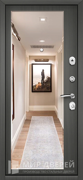 Надежная конструкция из профильной трубы 50х25 мм с ребрами жесткости 40х25 мм и стальным листом толщиной 2 мм делает эту модель долговечной и устойчивой к взлому, а два контура резинового уплотнителя обеспечивают защиту от сквозняков и посторонних запахов. Внутри установлена плита МДФ в темных или серых оттенках, дополненная зеркалом, которое удобно в быту и визуально увеличивает пространство прихожей. Входная дверь в квартиру черная №46 снаружи покрыта порошковой краской, устойчива к истиранию и долго сохраняет привлекательный внешний вид. В базовой комплектации предусмотрены два замка: верхний сувальдный Просам с тремя ригелями и нижний цилиндровый Мосрентген с системой 3+1 ригель, оба с классом защиты 2. По желанию клиента возможно заменить замки на более современные варианты известных брендов или установить электронные биометрические системы. Дверь можно изготовить с наружным или внутренним открыванием, левым либо правым направлением, а также дополнить стеклопакетом, коваными элементами, видеодомофоном, наличниками или доборами в цвет полотна.