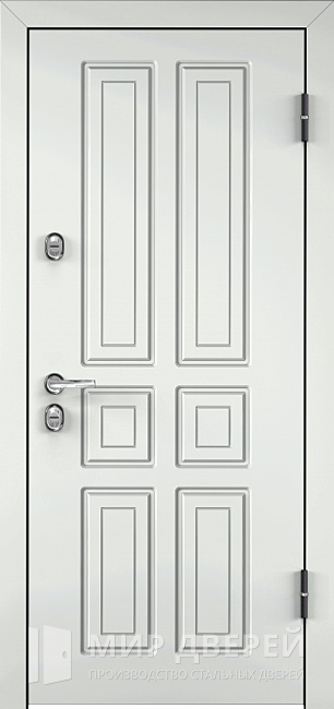 Элегантное сочетание надежности и современного стиля делает эту модель универсальным решением для квартиры, офиса или частного дома. Конструкция выполнена из прочных профильных труб и дополнена металлическим листом толщиной 2 мм с ребрами жесткости, что обеспечивает устойчивость к механическим воздействиям и попыткам взлома. Для дополнительной безопасности установлены два замка турецкого производства Kale Kilit: верхний сувальдный с тремя ригелями и нижний цилиндровый с системой 3+1 ригель, каждый из которых имеет третий класс защиты. Белая металлическая дверь в квартиру №53 отличается строгим и в то же время изысканным видом, её внешняя и внутренняя отделка выполнена панелями МДФ ПВХ, доступными в белом, коричневом или светлом оттенках. Два контура резинового уплотнителя помогают защитить помещение от сквозняков и шума, а при необходимости можно дополнительно усилить тепло- и звукоизоляцию с помощью минваты или пенопласта. Возможность установки зеркала, стеклопакета, кованых элементов или видеодомофона позволяет сделать дверь максимально функциональной и адаптированной к индивидуальным требованиям.