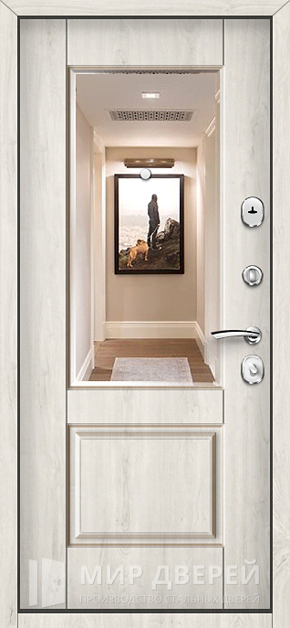 Эта модель сочетает элегантный внешний вид и высокий уровень безопасности, благодаря чему одинаково востребована как в квартирах, так и в частных домах или офисах. Снаружи и изнутри дверь отделана накладками МДФ в оттенках коричневого и беленого дуба, которые придают конструкции стиль и позволяют гармонично вписать её в интерьер. Встроенное зеркало делает помещение визуально просторнее и удобнее в повседневном использовании. Именно поэтому входная дверь в квартиру Cisa №55 привлекает внимание тех, кто ценит не только эстетику, но и надежность. В основе конструкции прочный металлический каркас из профильных труб, усиленный стальным листом толщиной 2 мм с ребрами жесткости, что гарантирует долговечность и защиту. Главным преимуществом этой модели являются замки итальянского бренда Cisa: верхний цилиндровый и нижний сувальдный, оба 4 класса защиты, обеспечивающие высокий уровень взломостойкости. Два контура резинового уплотнителя способствуют герметичности, а при необходимости дверь можно дополнить шумо- и теплоизоляцией, стеклопакетом или современным видеодомофоном.