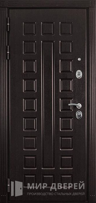 Эта металлическая дверь с внешней отделкой из МДФ ПВХ и внутренними ламинированными панелями МДФ идеально подойдет для частного дома, квартиры или офиса. Сочетание темных оттенков, включая черный и венге, придает ей современный и стильный вид, делая акцент на лаконичности дизайна без лишних элементов декора. Конструкция двери включает профильные трубы для рамы и полотна, а также двухмиллиметровый металлический лист, усиленный профильными трубами для жесткости, что обеспечивает высокую прочность и долговечность.