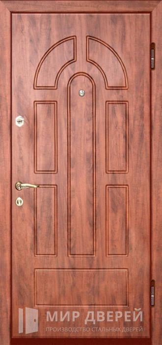 Металлическая дверь МДФ в квартиру №186 подходит для частных домов, квартир и офисов. Обе стороны двери отделаны МДФ ПВХ, что придаёт ей современный и стильный вид. Каркас и полотно выполнены из профильной трубы 50х25 мм, обеспечивая прочность и надёжность конструкции. Лист металла толщиной 2 мм и дополнительные ребра жёсткости из профильных труб 40х25 мм повышают безопасность.