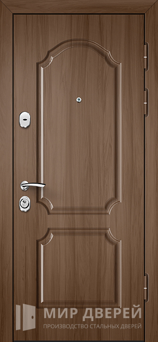 Эта металлическая дверь с облицовкой из МДФ и ПВХ идеально подходит как для частных домов, так и для квартир и офисов. Её универсальный дизайн с наружной и внутренней отделкой из МДФ в светлых и коричневых тонах позволяет гармонично вписаться в любой интерьер без декоративных излишеств. Стальной каркас из профильной трубы 50х25 мм и полотно с такой же основой обеспечивают надёжность и долговечность изделия. Толщина металла в 2 мм в сочетании с профильными трубами, укрепляющими конструкцию, делает дверь стойкой к физическим повреждениям.