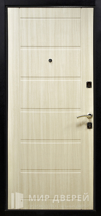 Эта входная дверь, изготовленная из МДФ с покрытием ПВХ, предназначена для установки в частные дома, квартиры или офисы и идеально подходит для тех, кто ценит качество и безопасность. Структура двери включает коробку из профильной трубы 50х25 мм и полотно такой же конструкции, усиленное листом металла толщиной 2 мм и профильными трубами для рёбер жёсткости, что обеспечивает высокую прочность и надёжность. Блокираторы в сочетании с двойными уплотнениями и отсутствием терморазрыва гарантируют хорошую изоляцию от внешних условий.