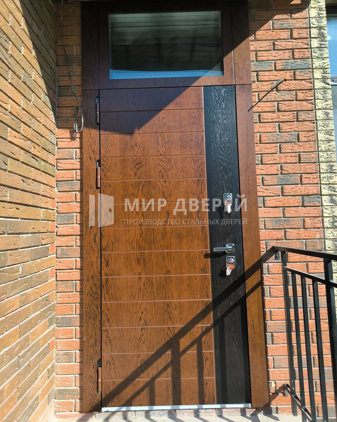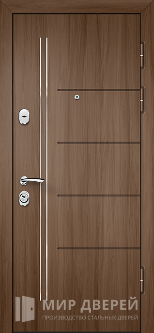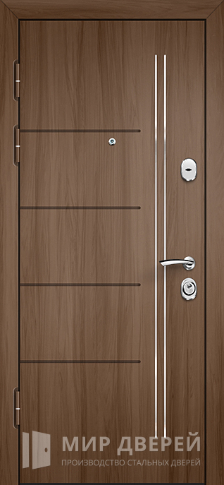 Дверь не имеет декоративных элементов, что подчёркивает её строгость и элегантность. Возможно комбинирование любых вариантов отделки, что позволяет подогнать дверь под стиль интерьера или экстерьера. Дверь также может быть оснащена различными замками и аксессуарами, такими как видеодомофон, зеркала, стеклопакеты и кованые элементы, что обеспечивает высокий уровень комфорта и безопасности.