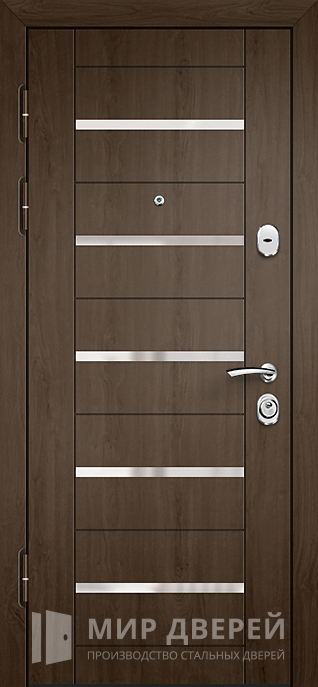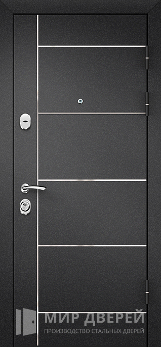 Дверь изготавливается по индивидуальным размерам, что позволяет идеально вписать её в любой дверной проем. Черные и темные оттенки отделки придают двери строгий и элегантный вид, подходящий для любого интерьера и экстерьера.