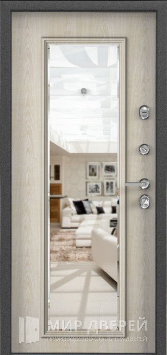 Входная дверь с зеркалом с установкой №10 объединяет практичность и современный дизайн, делая её идеальным выбором для частного дома, квартиры или офиса. Элегантная порошковая окраска в сером цвете и внутренняя отделка из плиты МДФ не только украшают её внешний вид, но и обеспечивают долговечность и устойчивость к повреждениям. Интегрированное зеркало добавляет функциональности и стиля, расширяя пространство и увеличивая освещённость помещения.