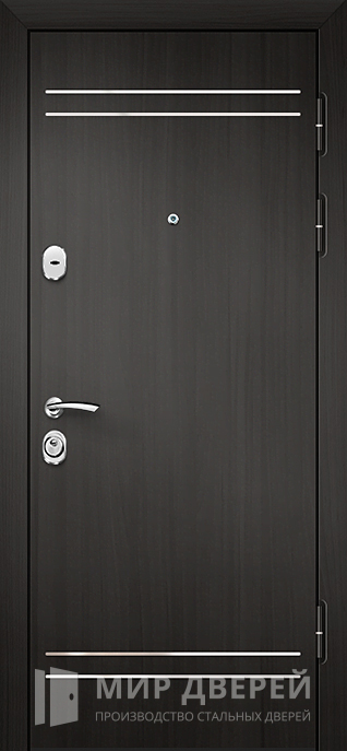 Железная дверь Венге №18 сочетает в себе надежность и современный стиль. Отделка выполнена из панелей МДФ ПВХ, которые придают двери элегантный внешний вид в черных и темных оттенках, а также в цвете венге. Конструкция двери включает коробку и полотно из профильных труб 50х25 мм, усиленные ребрами жесткости из профильных труб 40х25 мм, что обеспечивает дополнительную прочность и устойчивость. Лист металла толщиной 2 мм гарантирует высокую степень защиты.