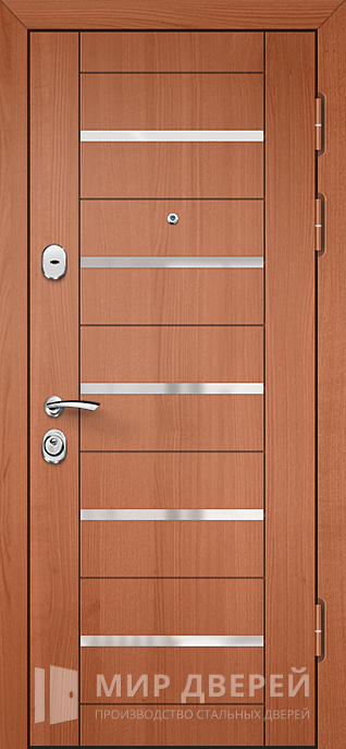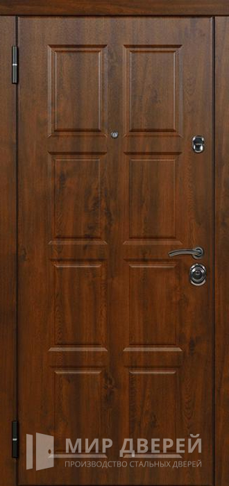 Эта модель сочетает в себе надежность металлической конструкции и современный лаконичный дизайн, подходящий как для квартиры в новостройке, так и для офиса или частного дома. Каркас и полотно изготовлены из профильной трубы 50х25 мм с ребрами жесткости 40х25 мм и стальным листом толщиной 2 мм, что гарантирует прочность и долговечность. Внешняя и внутренняя отделка выполнены из панелей МДФ ПВХ в коричневом цвете, что делает дверь универсальной и гармонично сочетаемой с разными интерьерами. Современная стильная входная дверь №9 оснащена двумя надежными замками российского производства: верхним сувальдным Просам и нижним цилиндровым Мосрентген, обеспечивающими качественное запирание с несколькими ригелями и соответствующими второму классу защиты. Для дополнительного удобства предусмотрены два контура резинового уплотнителя, которые защищают от сквозняков и пыли, а при необходимости можно добавить шумо- и теплоизоляцию. Конструкцию легко адаптировать под индивидуальные запросы: возможна установка зеркала, стеклопакета, декоративных кованых элементов, а также подбор варианта отделки в нужном цвете, что делает дверь практичным и эстетичным решением для любого жилья.