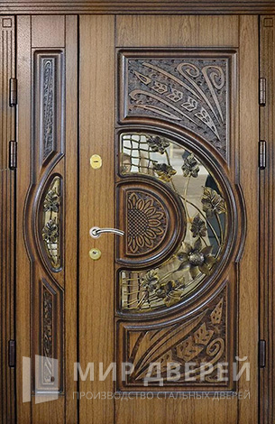 Особенностью данной модели является внедрение стеклянных элементов, которые добавляют изысканности в общий вид двери, делая её не только функциональной, но и стильной частью фасада. Такая дверь станет ярким акцентом архитектуры любого дома, подчеркивая индивидуальность и вкус владельца.