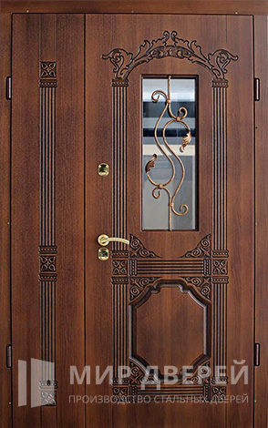 Дверь стальная со стеклом в коттедж №111 идеально подходит для установки в частных домах и коттеджах, предлагая сочетание усиленной безопасности и эстетической привлекательности. Изготовленная из массива дуба как внутри, так и снаружи, эта дверь обладает не только высокой прочностью, но и изысканным внешним видом, который дополнен стеклянными вставками для привнесения большего света в интерьер.